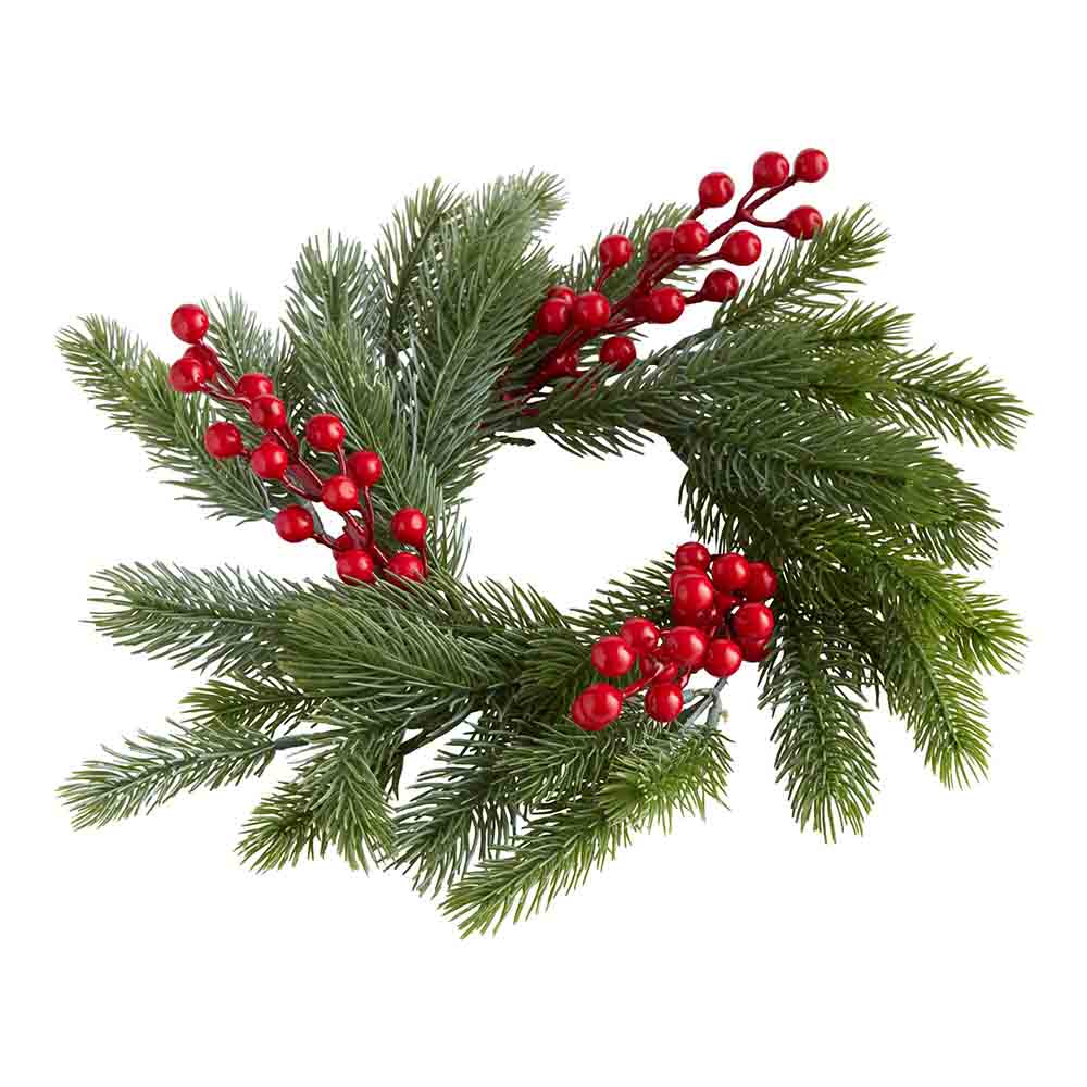 Pier Place Red Faux Berry & Pine Candle Ring