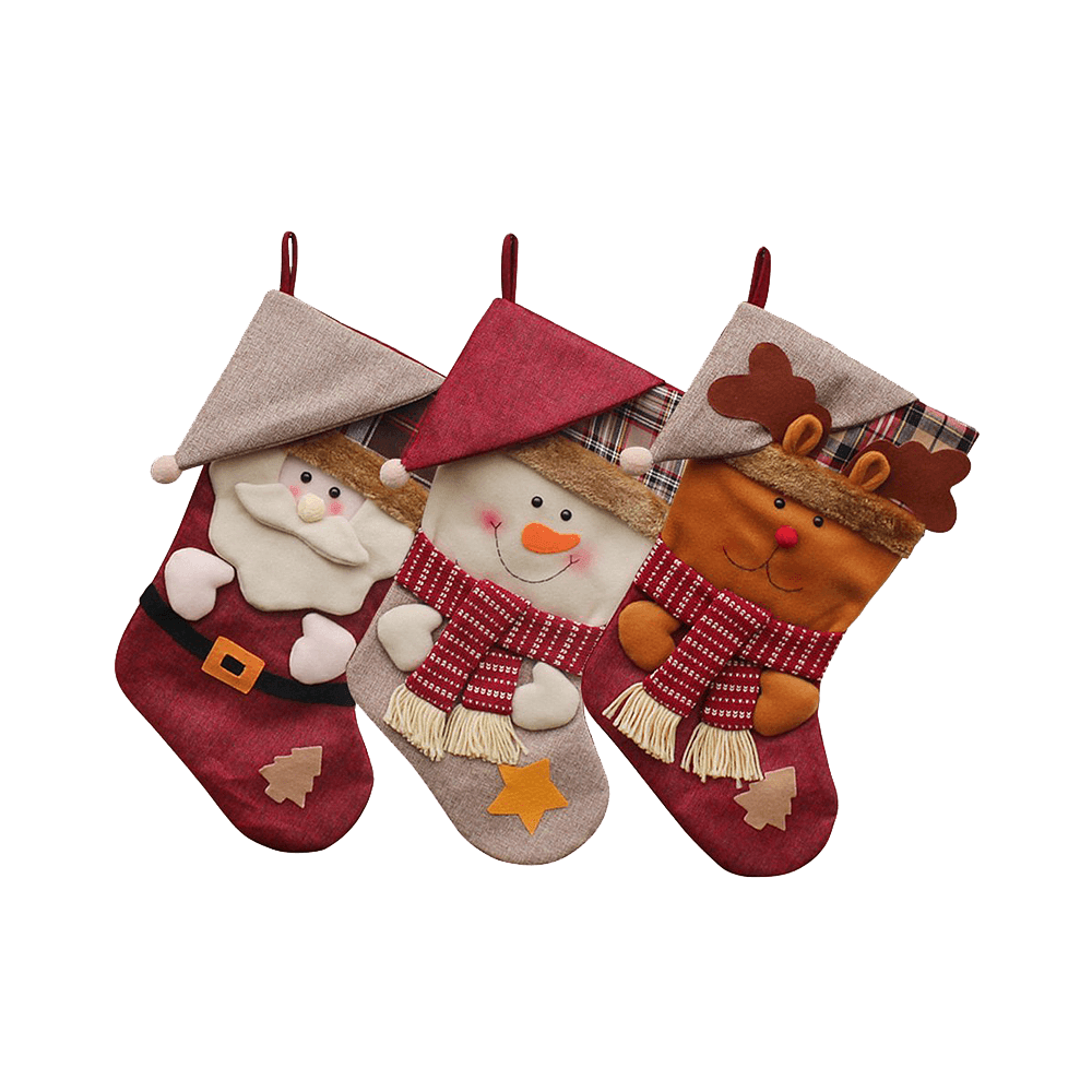 Red Felted Wool Christmas Stocking with Pom Tassels